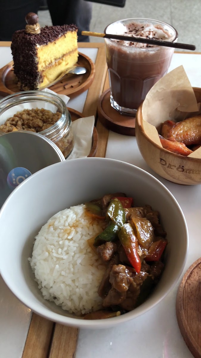 Cozy - Clean - Superb. Coffee shop menu with cafe style design , modern natural with wood dominant and high lighting , full air cond , has outdoor area and also second floor. Located at the city centre and prime street make it easy to catch , and they provide a parking lot behind the building. The menu is dominant with western food , drinks , and snacks. Finger foods , cake , rice with wagyu , rice with duck , apple scrumble , etc. The drinks they specially provide coffee in many style - cappuccino , espresso , affogato , latte , smoothies , tea selections , milkshakes. The superb here are their ammo , they use Lamarzocco LEVA one of the best and prestige and also most expensive of Lamarzocco colection (the best espresso machine in the world , handmade in Florence Italy) - four thumbs up. The grinder they use also the best in the world , Mazzer and Mahlkonig , thats awesome. Behind the bar , there is a 5 kg roasting machine , wow , but I cant see the brand. With these machinaries , I think they are serious enough to serve a good coffee , and also other stuffs. For my pallete , I try te cappuccino, and it was a good latte art at the foam , but for me it was a little bit too bitter - like it was a robusta or itwas a little burnt , or if not , I think the glass was too small so the milk was too little. But overall it was good to hangout there , spent like 1.5 hours and the time flies so quick. Recomended to try , worth it with $$++ price for the quality and refreshing.
