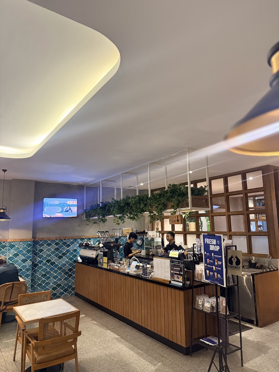 Good ambience. I ordered single origin coffee "Kamojang Coffee", good taste, fruity, but for me it's too light. For cappuccino, unique glass, even too small for cappuccino. The taste I think the temperature for cappuccino little bit cold.